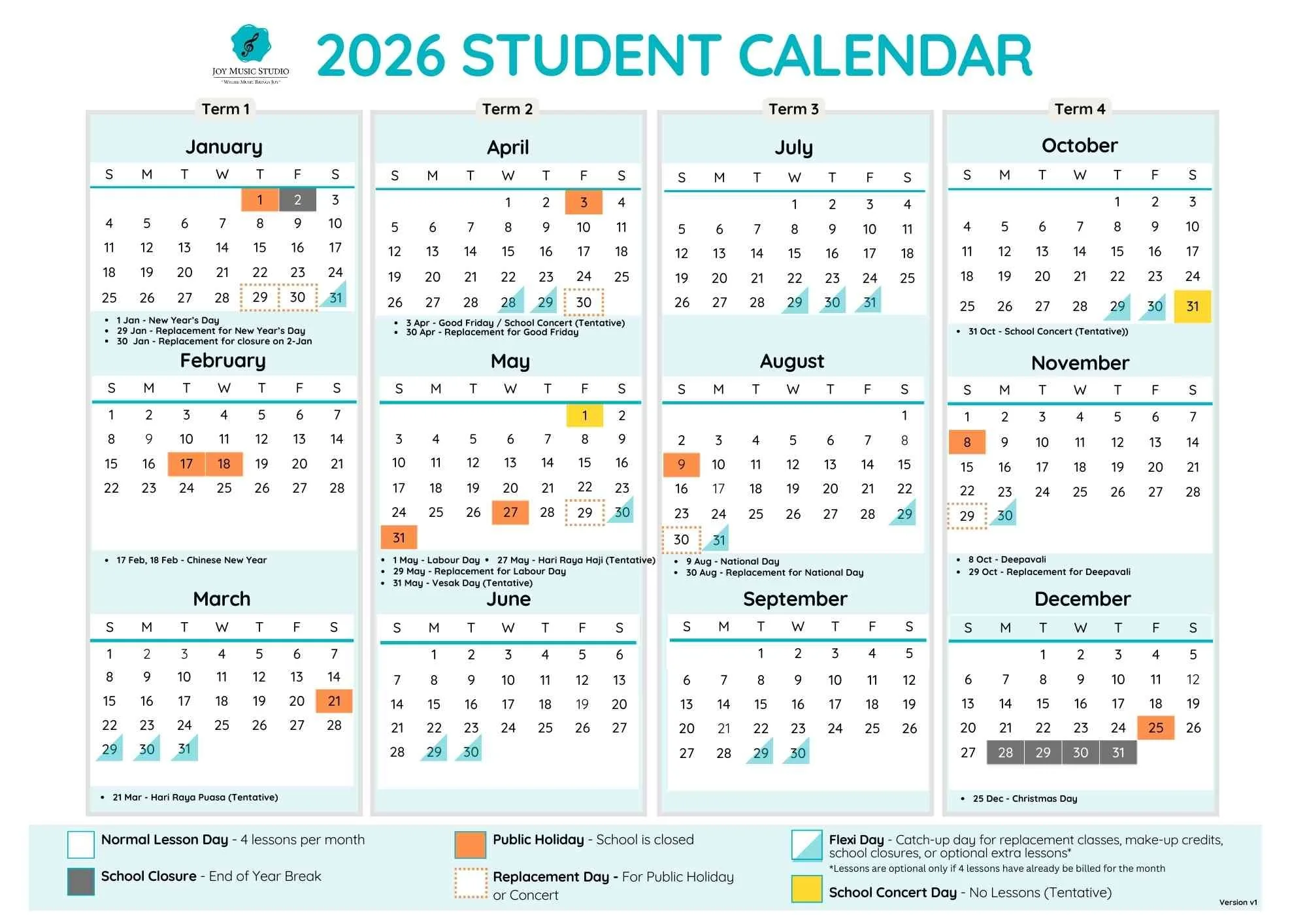 That’s why our School Calendar offers students an optimum number of lessons each year for consistent lesson time, rest, and practice.